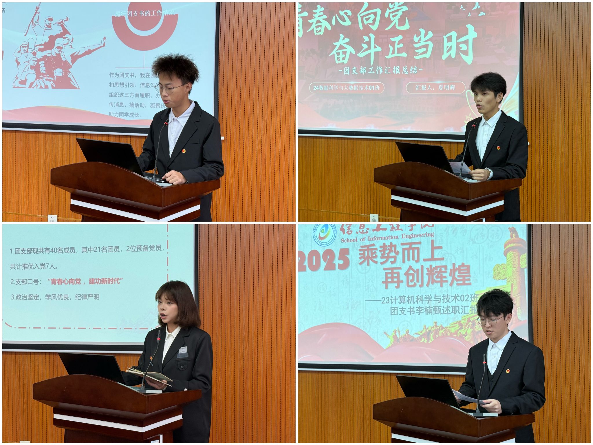 为全面评议各班级团支部书记履职成效,激发基层团组织活力,12月17日,信息工程学院团委在信工楼A208开展2025年班级团支部书记述职评议活动,学院团委负责人、辅导员代表以及全体非毕业班团支书参加。