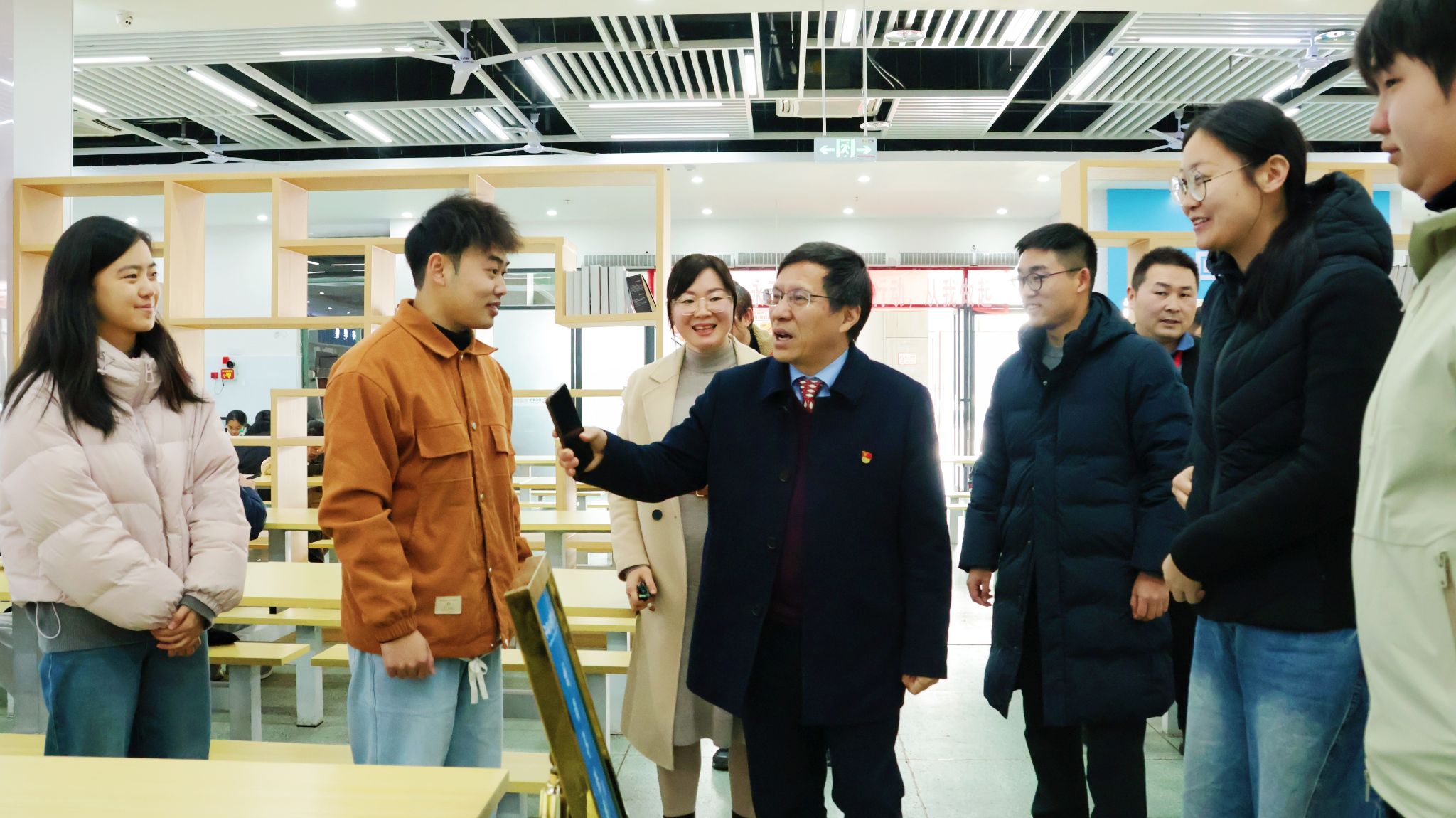 交流中,汪胜前还详细询问了同学们的学习、生活状况,听取了同学们对就餐环境、菜品价格、菜品种类等方面的意见,耐心解答同学们关心的问题;同时,对同学们在专业前沿、实践机会、未来规划等方面疑问与困惑,也给予了深入分析与引导,鼓励同学们树立长远眼光,扎实打好基础,重视数学这门基础课程的学习,提前做好职业规划,不断提升自身的核心竞争力。同学们也衷心祝愿老师们新年快乐,学校在新的一年发展越来越好!
